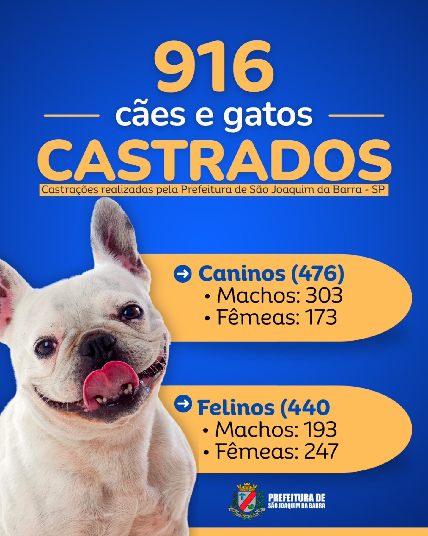 Prefeitura realizou 916 castrações de cães e gatos em 2025