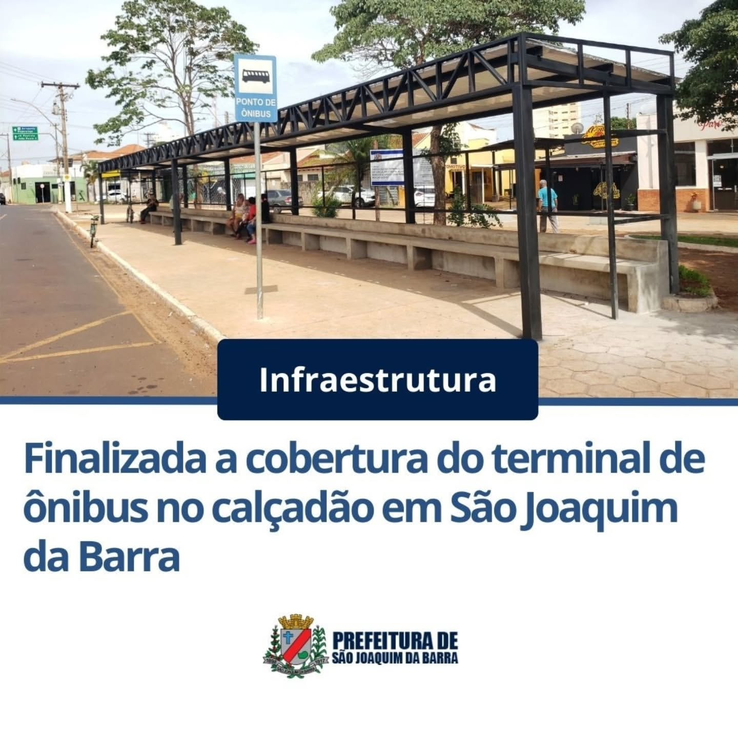 A Prefeitura de São Joaquim da Barra finalizou a montagem da cobertura do terminal de ônibus urbano, localizado no calçadão da rua Rio Grande do Sul, no Centro.